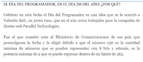 " ... El 13 de septiembre es el día 256 del año, es la cantidad máxima que se puede representar con 8 bits ..."